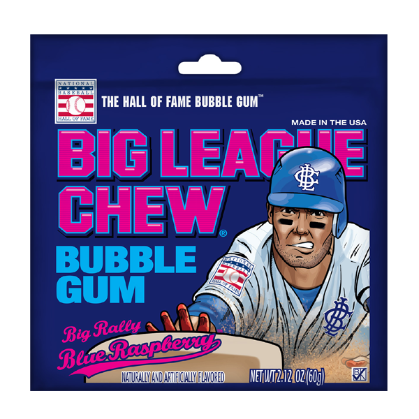 Big League Chew? Big Rally Blue Raspberry is the Hall of Fame Bubble Gum! Shredded bubble gum in a stay-fresh pouch that keeps the juicy flavor locked inside. A fan favorite since 1980, Big League Chew is bubble gum fun for everyone!