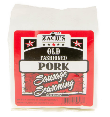 Old Fashion Pork Sausage is traditional country-style pan sausage with sage flavor. A favorite for venison sausage, fresh or smoked. Spices include sage, crushed red pepper and black pepper.
