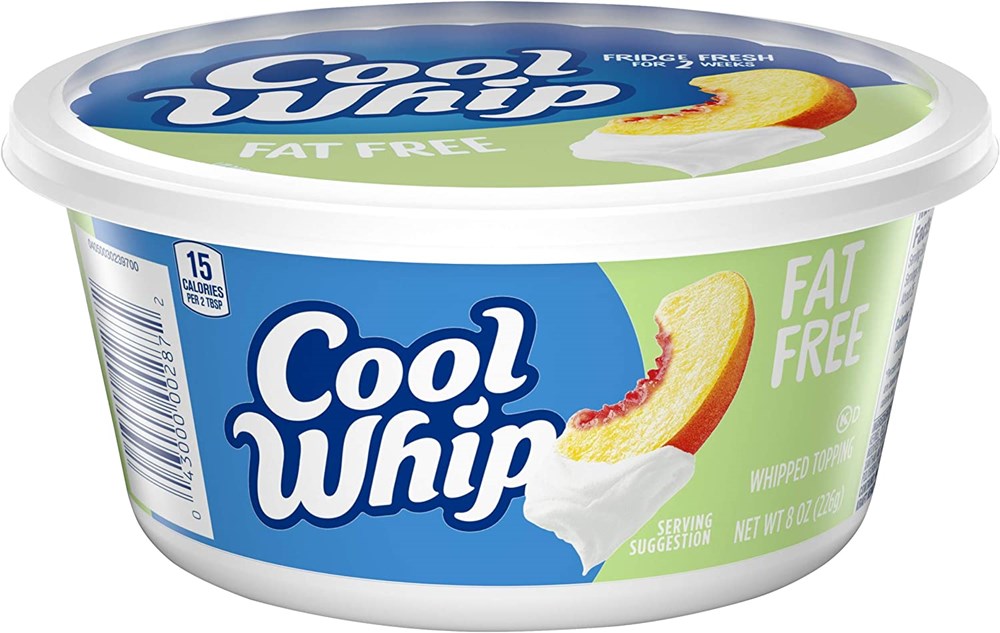 Cool Whip Fat Free Whipped Topping is a one-of-a-kind dessert topping that adds sweet flavor and creamy texture to all your favorite desserts and recipes. With its unique and trusted formula, Cool Whip topping completes your dessert. Add a dollop of Cool Whip to strawberry shortcake, chocolate pie or banana pudding to take your favorite desserts to the next level without adding any extra fat. Cool Whip also adds a deliciously creamy texture to fruit salad, or try using it to top off the perfect ice cream sundae. This dessert topping can also be used to make a delicious crepe filling. Place unopened 8 ounce tub of whipped topping in refrigerator for 4 hours to thaw. Do not stir. Keeps fresh in refrigerator 2 weeks. May be refrozen for longer storage.