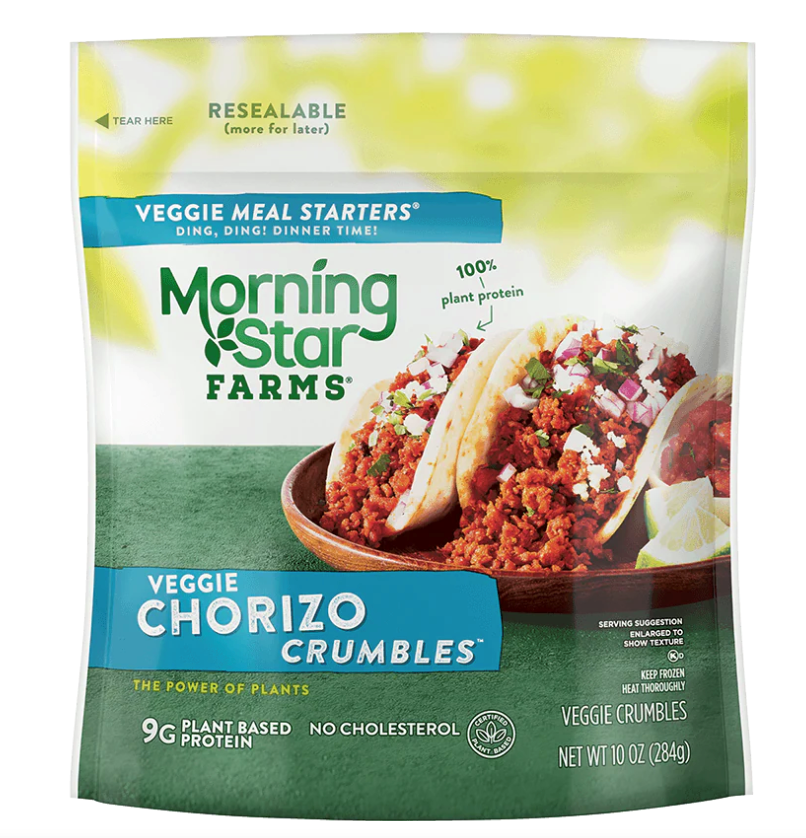 MorningStar Farms® Chorizo Crumbles are boldly seasoned and ideal for an array of savory recipes. Go ahead and get creative; use these vegan crumbles for zesty breakfast burritos, stuffed peppers, on a home-made pizza, or as part of a delicious pasta dish.